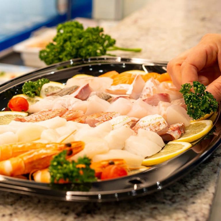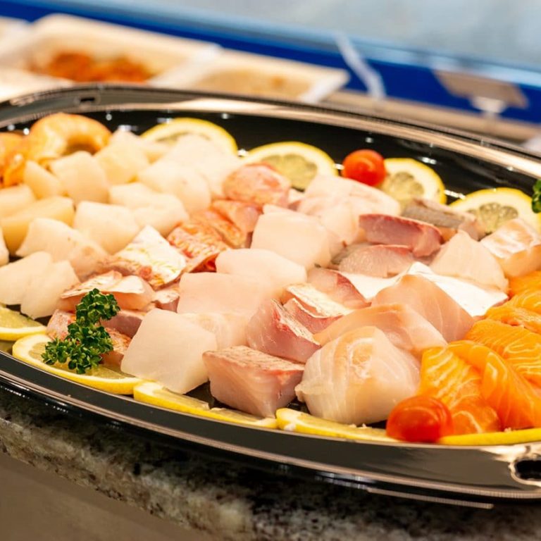 Les filets de poisson sont finement émincés : lotte, rouget, saumon, crevettes ou encore noix de Saint-Jacques… le choix est large et se fera en fonction de l’arrivage du jour.